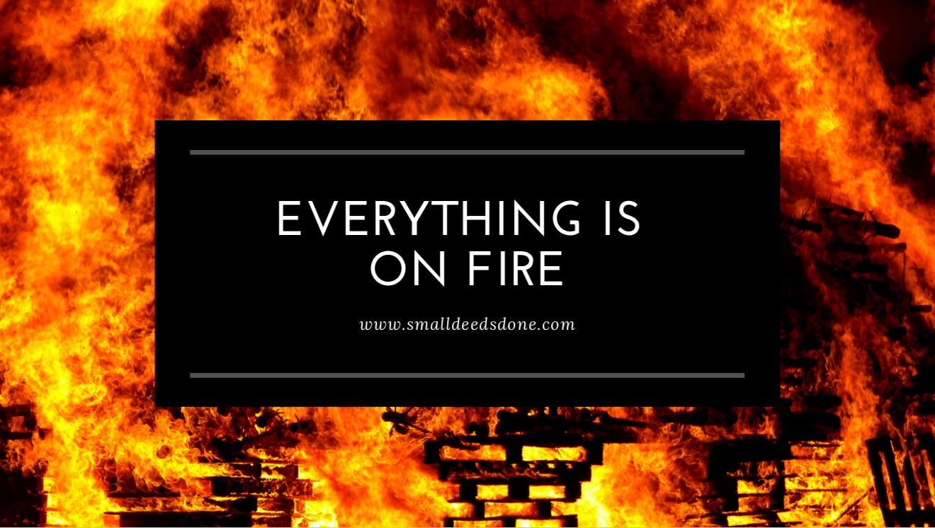 It’s the perfect, tragic analogy to what’s happening all around us, I said. Everything feels like it’s burning. The whole world is on fire. You know?