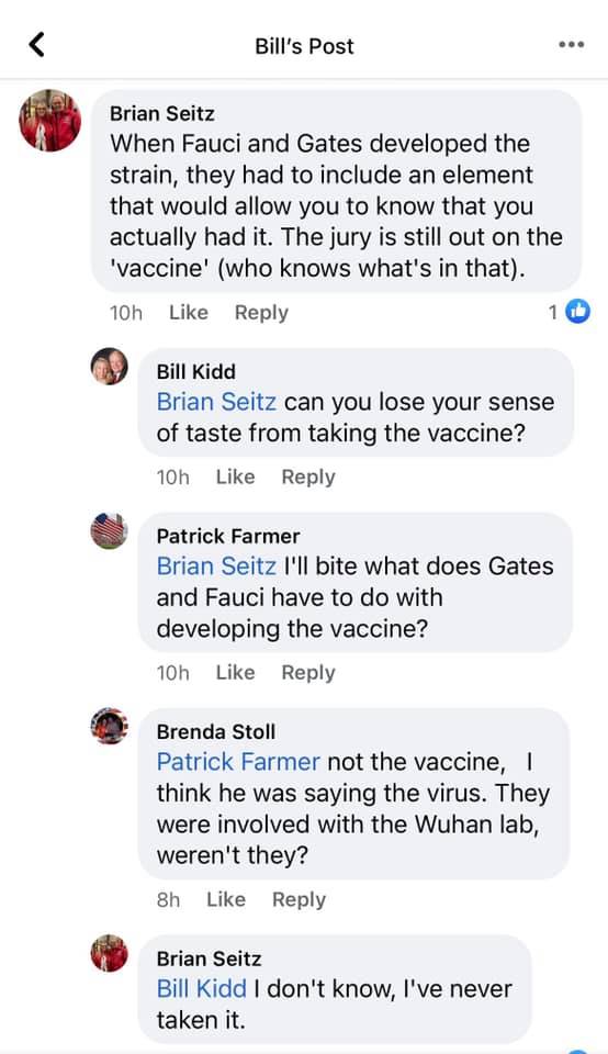 These are actual screenshots of two Missouri state legislators’ (Brian Seitz and Bill Kidd) comments on Facebook after they contracted COVID.