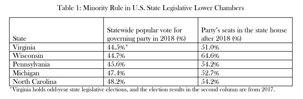 In Wisconsin, Republicans got 44.7% of the votes statewide… but 64.6% of the seats in the state house.