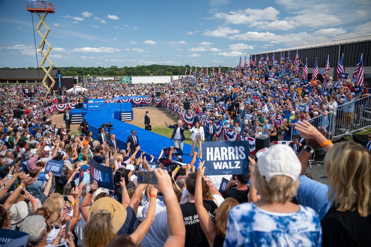 More than 12,000 people attended the Harris/Walz rally in Eau Claire, Wisconsin (pop 69,737); Image Credit @Tim_Walz