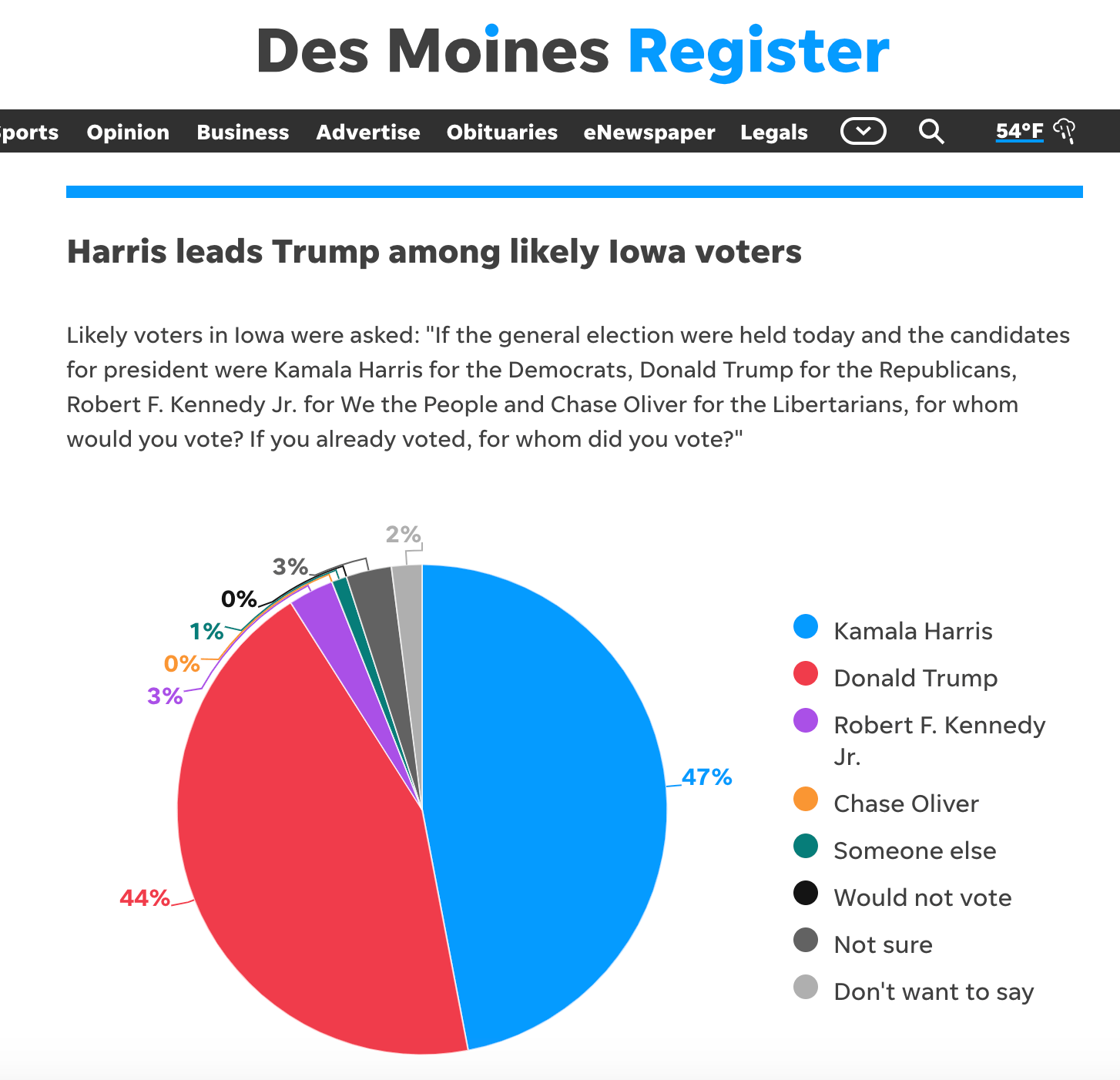 For reference, Donald Trump won Iowa in 2020 by 8 points. (Just one point off of the result predicted in Selzer’s 2020 poll, which had Trump winning by 7%.)