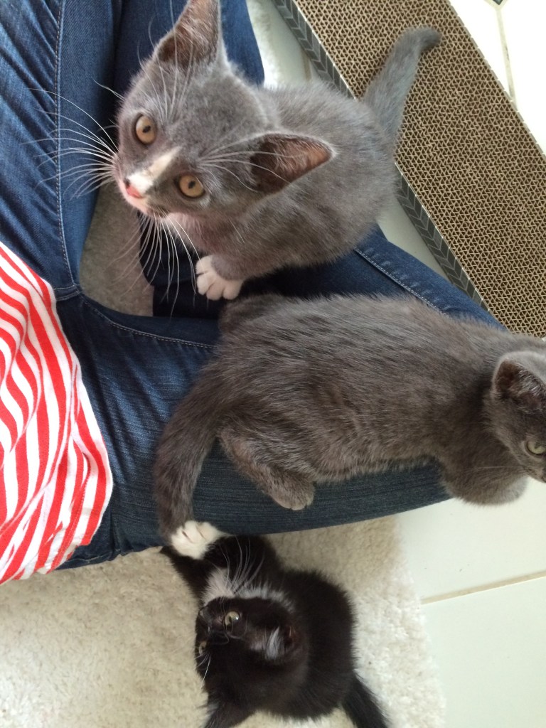 “The other two are nice though. That gray one really loves to be held, actually.”