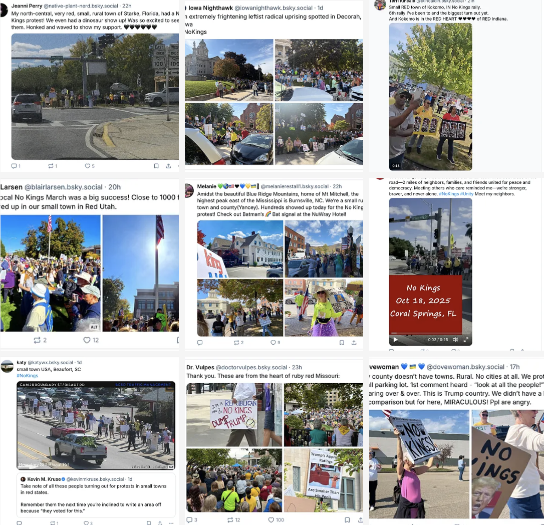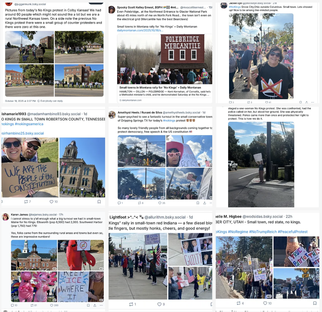 Screenshots of Small Town No Kings Protests, October 18, 2025