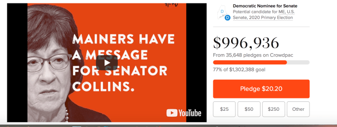 Individually we are one drop. Together, we are an ocean. ~Ryunosuke Satoro It occurred to me when I saw the Crowdpac campaign take off. You've probably seen the campaign I'm referring to. It's a sortof hybrid crowdfunding initiative for Senator Susan Collins' opponent in 2020. But the money only goes to her Democratic challenger if … Continue reading What Susan Collins Has Taught Us About the Resistance